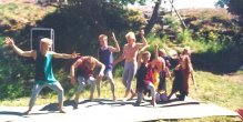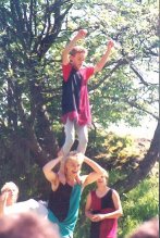 Skolelever som medeltida akrobater och eldsslukare